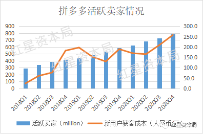 新业务会带来新用户,但在红星资本局看来,这已经不是拼多多目前的主要矛盾所在。在微信的巨大流量带动下,早在2020年底,拼多多的活跃买家数量就达到7.88亿,超过同期阿里巴巴的7.79亿,拼多多也首次成为国内用户规模最大的电商平台。